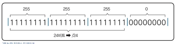 이진수 표기법으로 1로 표시되어 있는 부분까지 네트워크 영역으로 사용하고, 0은 호스트 IP로 사용하겠다는 의미.