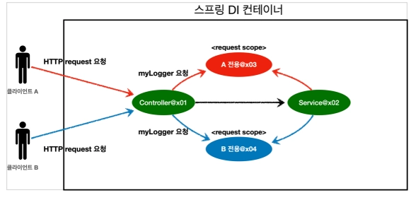 request : HTTP 요청 하나가 들어오고 나갈 때 까지 유지되는 스코프, 각각의 HTTP 요청마다 별도의 빈 인스턴스가 생성되고, 관리된다.
