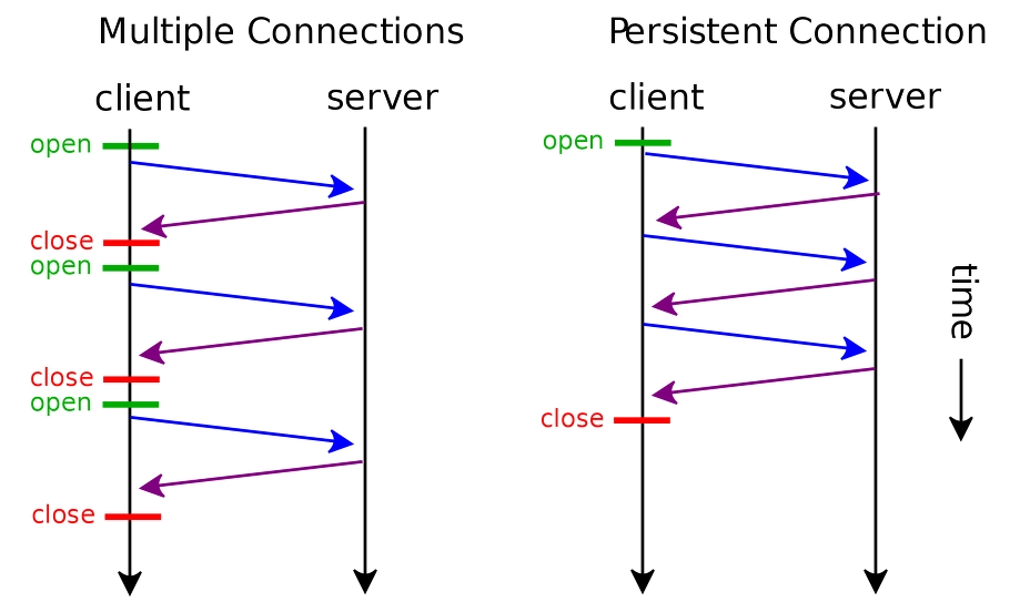 서버와 클라이언트 중 하나가 명시적으로 close을 할때까지 connection을 유지한다.