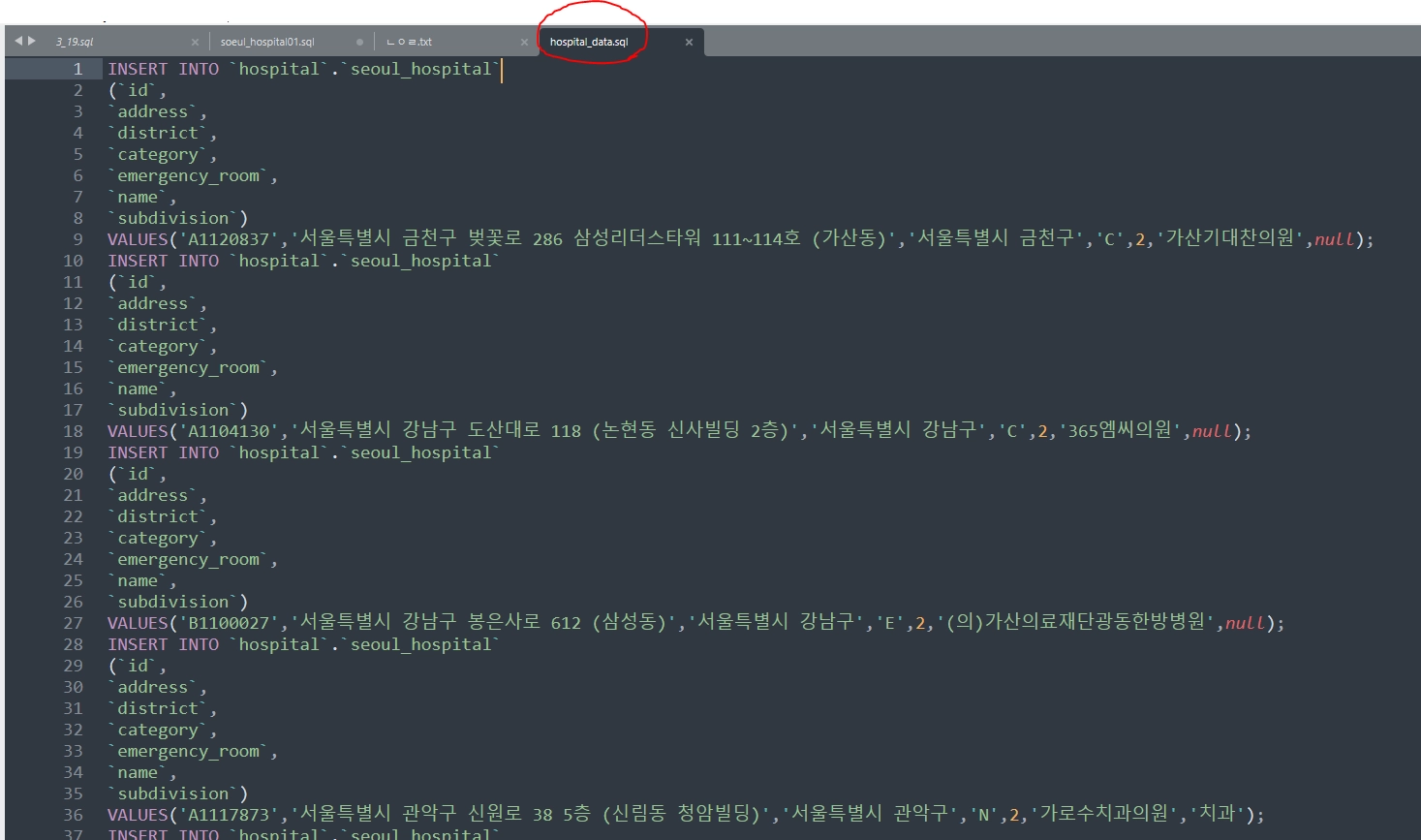 INSERT INTO `likelion-db`.`seoul_hospital`