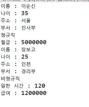 클래스 Employee(직원)은 클래스 Regular(정규직)와 Temporary(비정규직)의 상위 클래스