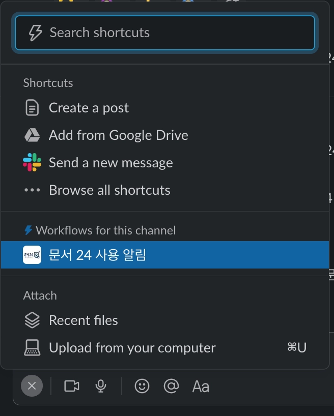 문서24는 동시 로그인이 불가합니다. #edu-all에 아래 워크플로우를 클릭하여 사용 전 반드시 다른 교육팀에 노티를 해주세요!