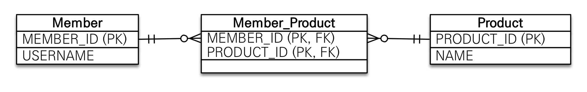 연결 테이블을 추가해서 일대다, 다대일 관계로 풀어내야함