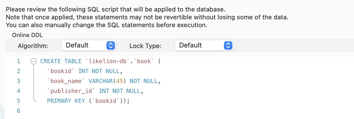 그래서 book Table에 INSERT INTO `likelion-db`.`book` (`bookid`, `book_name`, `publisher_id`) VALUES (1, 'Do It! 자바 프로그래밍 입문2', 1); 을 또 Insert 할 경우 1번을 이미 앞에서 쓰고 있기 때문에 Duplicate entry 에러가 난다.
