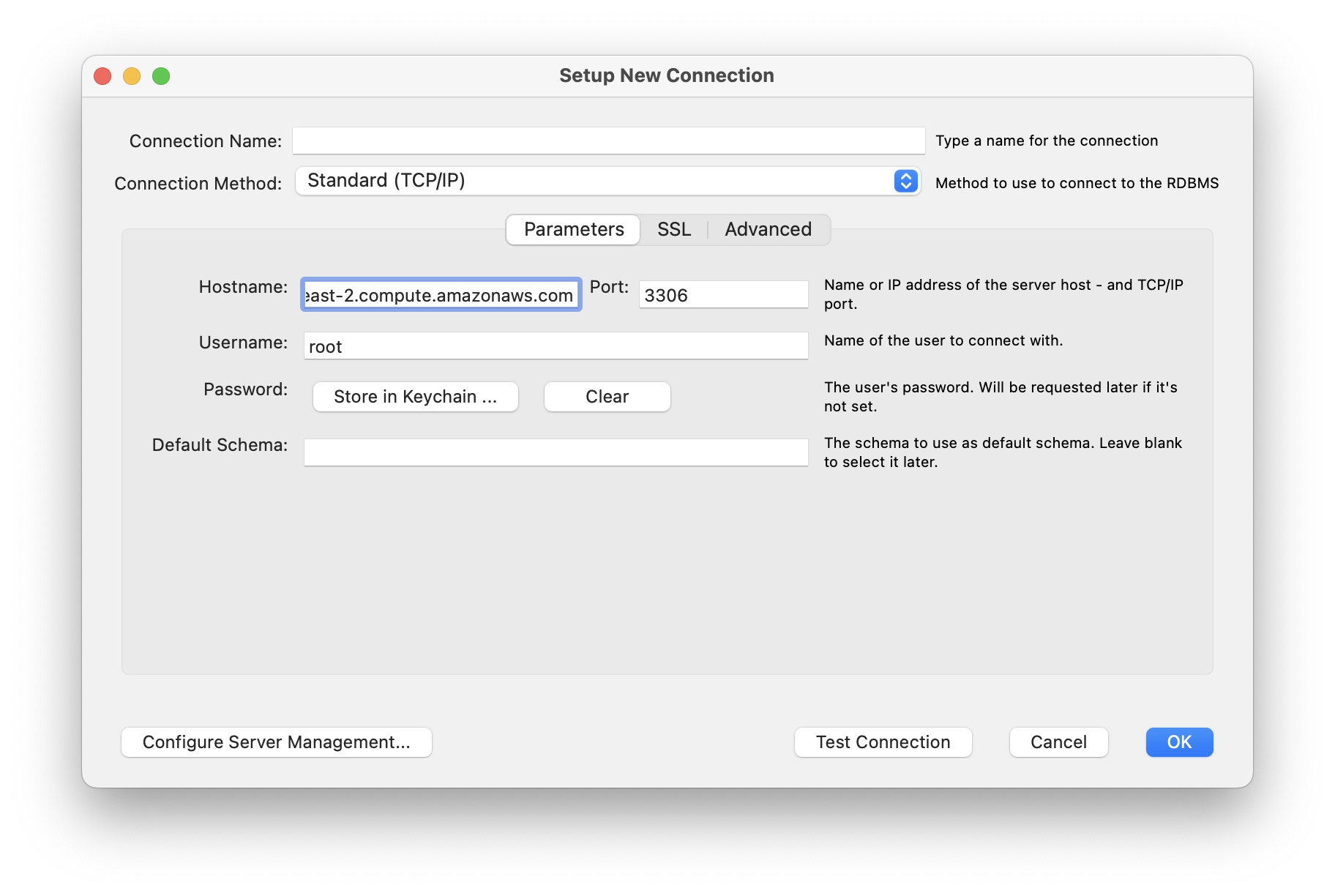 MySQL Workbench 설치 후 ‘+’ 버튼을 눌러 새로운 Connection 을 만든다.