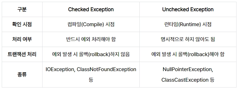 상속하지 않은 클래스 → Checked Exception으로 분류