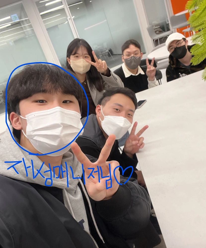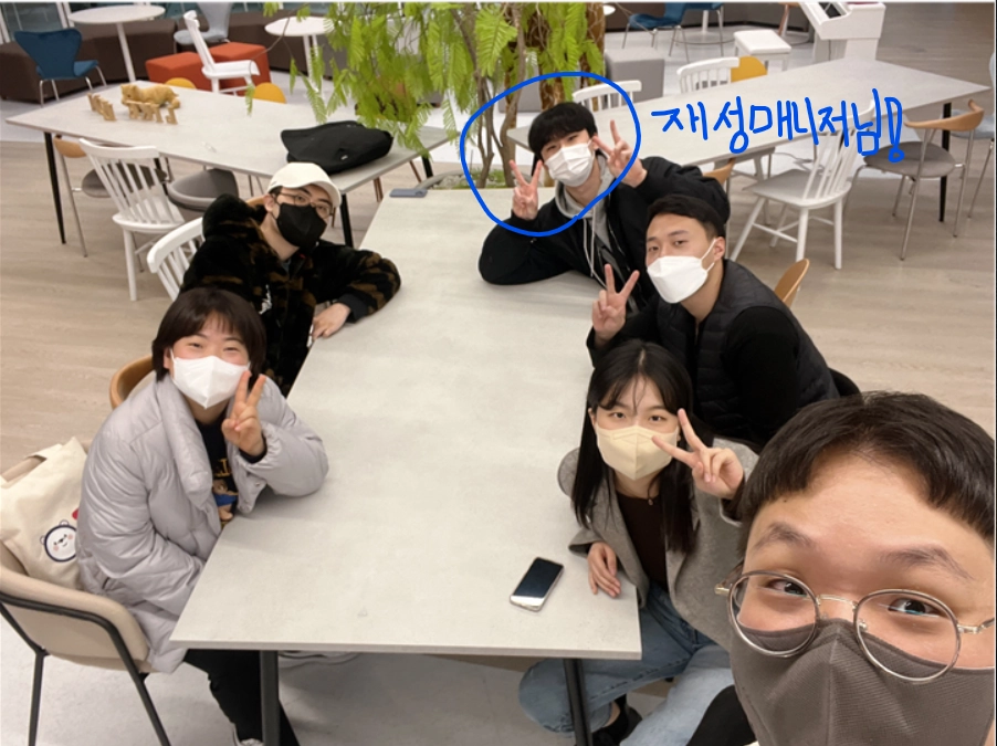 재근님 - 온라인에서 2달동안 화면으로 뵙다가 멋사에서 좋은 자리를 마련해주셔서 이렇게 다 같이 모이게 되었습니다! 처음에는 너무 어색했는데 역시 금방 친해지더라구요! 역시 회고 10팀입니다