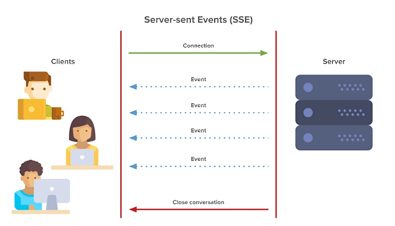 websocket 과 같이 양방향이 아닌 단방향이기에 서버의 알림 기능을 클라이언트한테 보내는 작업에 유용하게 사용될 수 있다.