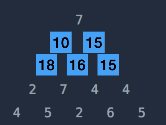 triangle[height-2][i] += max([triangle[height-1][i], triangle[height-1][i+1]])