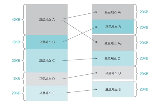 프로세스의 크기에 따라 메모리를 나누는 것