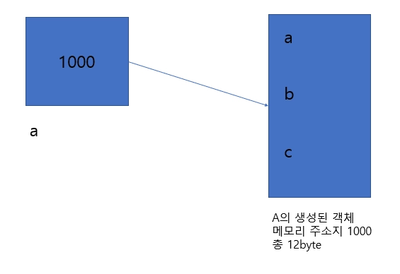 jvm은 32bit 시스템 그래서 참조형 데이터 타입은 4byte 주소값이 들어간다.
