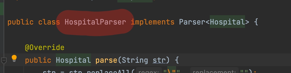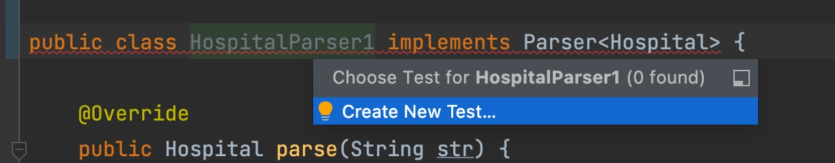 HospitalParser 클래스 이름에 마우스 커서를 두고 난 후,