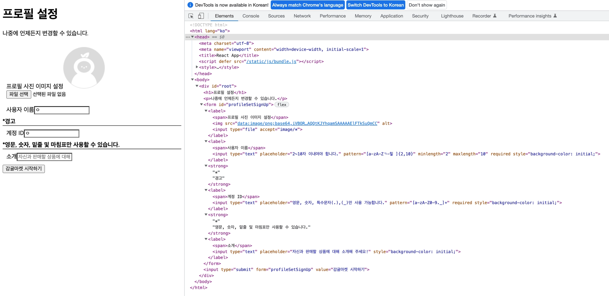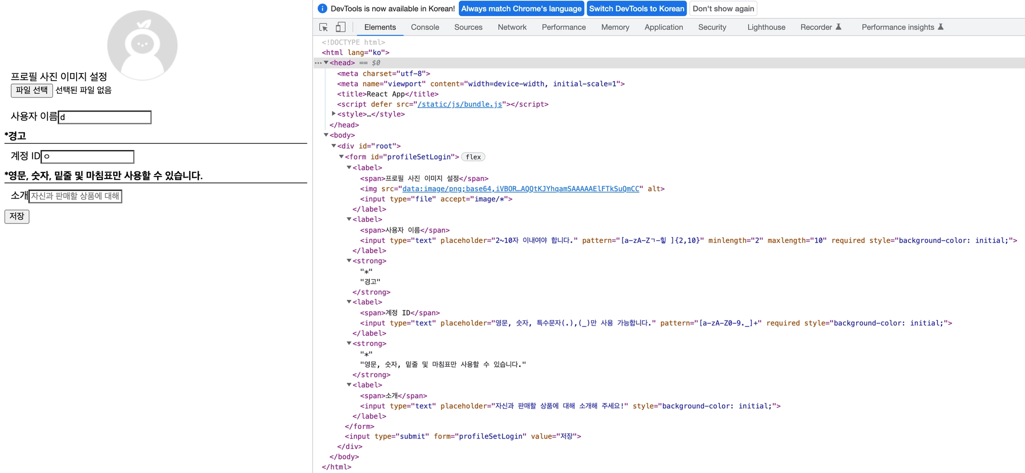 InfoInput과 Warning 연결 방법, required 가독성 문제 해결 후 전체 코드 입니다.