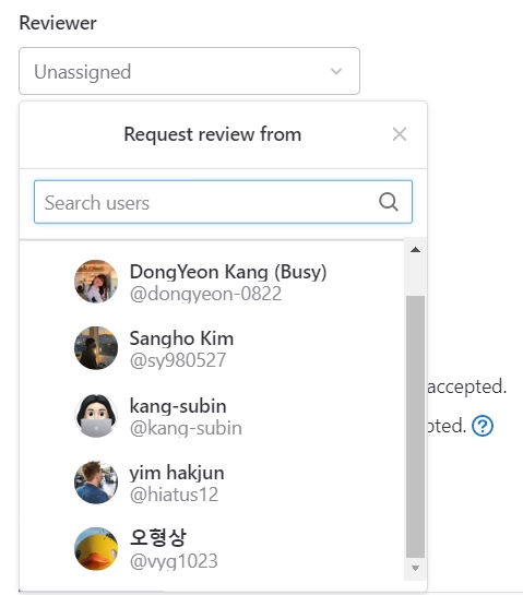 Pull Request → Reviewer 설정으로 리뷰 요청 보내기 (Discord로 한번 더 알리기)