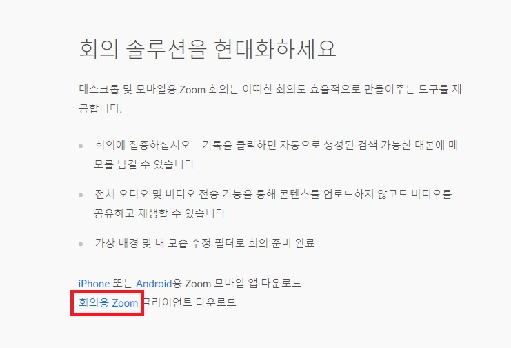 2. 회의용 Zoom 클라이언트 다운로드