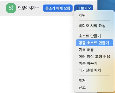 하단 참가자 클릭 > 강사님 이름 옆 더 보기 클릭 > 공동 호스트 만들기