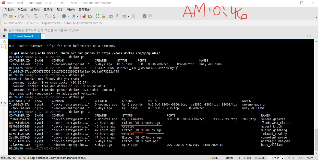 docker에서 -d (데몬)으로 띄운 mysql이 내려갑니다.