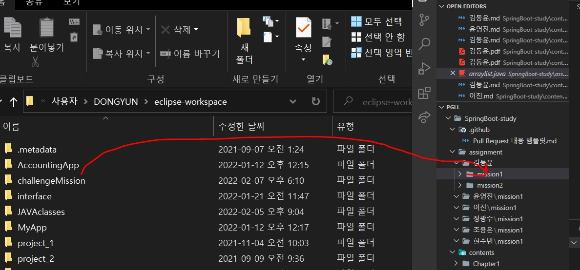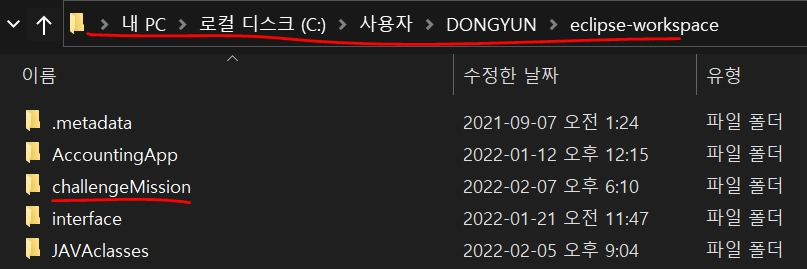 컴퓨터에서 자신이 과제 진행한 파일을 찾아서 (저 같은 경우는 이클립스에서 과제를 수행했기 때문에 eclipse-workspace를 찾아갔습니다.)