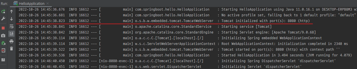 8080번 포트를 통해 웹 서버가 열린 것을 로그에서 확인할 수 있다