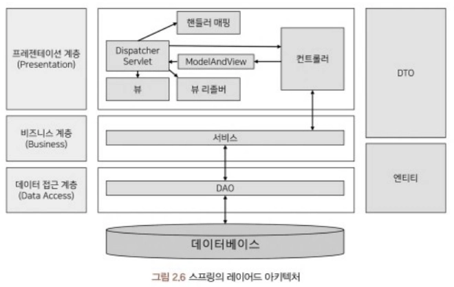 애플리케이션의 컴포넌트를 유사 관심사를 기준으로 레이어로 묶어 수평적으로 구성한 구조