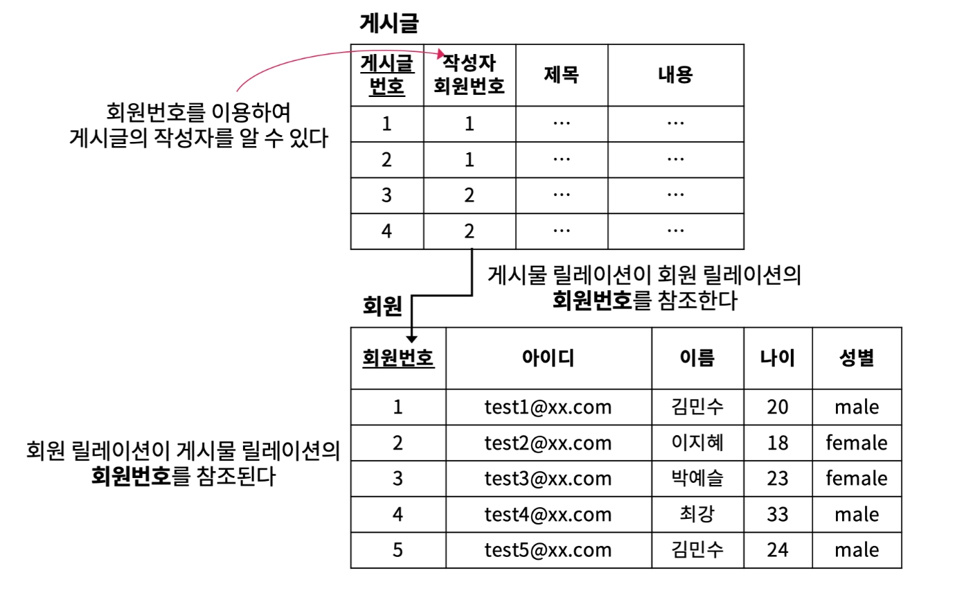 → 참조하는 릴레이션이 외래키를 통해 참조되는 릴레이션을 참조한다.