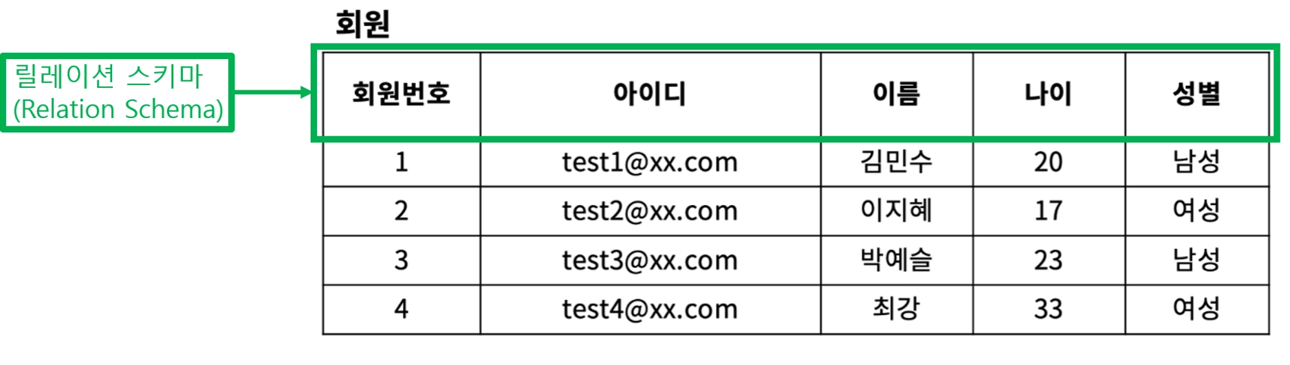 관계형 데이터 베이스 스키마(관계 스키마)