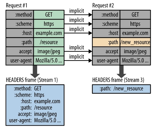HPACK 압축 방식을 사용해 헤더 세트를 전송