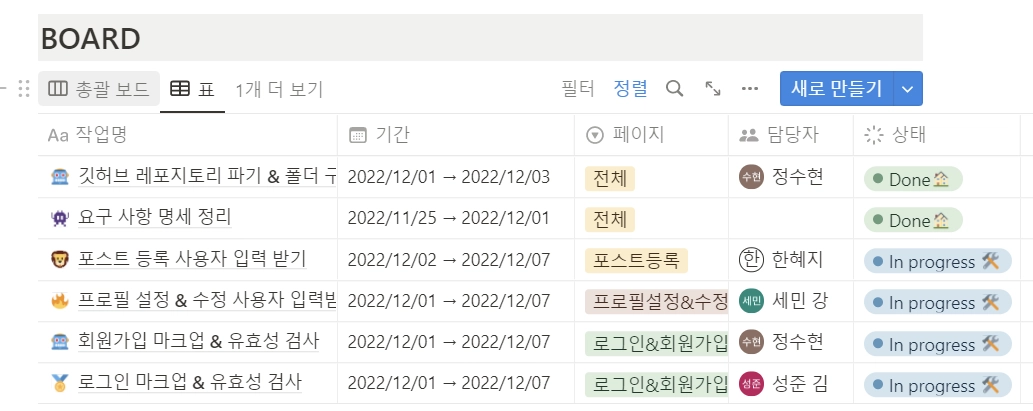 노션 페이지 내 할일 목록에서 맡을 일을 정한다.