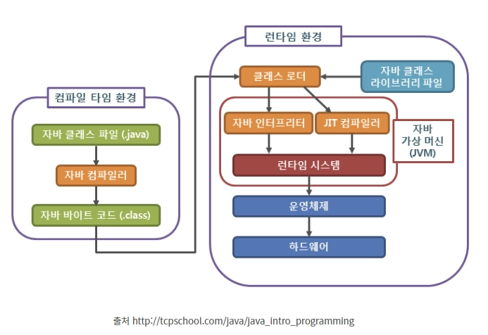 -- 이 바이트코드 파일을 실행 하는 순간 JVM이 동작된다. --—