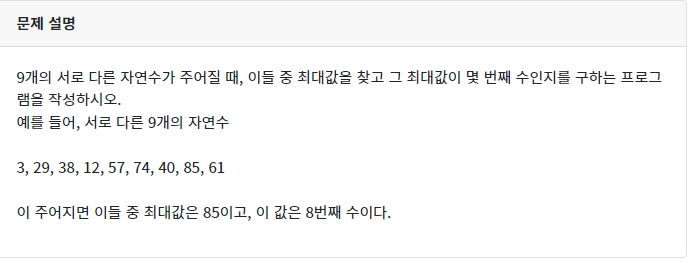 문제2) 최대값 2 (codeup.kr)