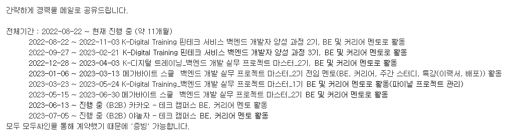 이력서만 코칭하고, 내부 진행했던 자료로 진행