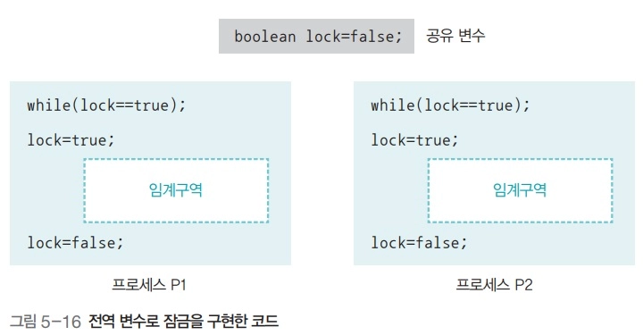 잠겨있으면 무한 루프를 돌며 대기 while(lock==ture);