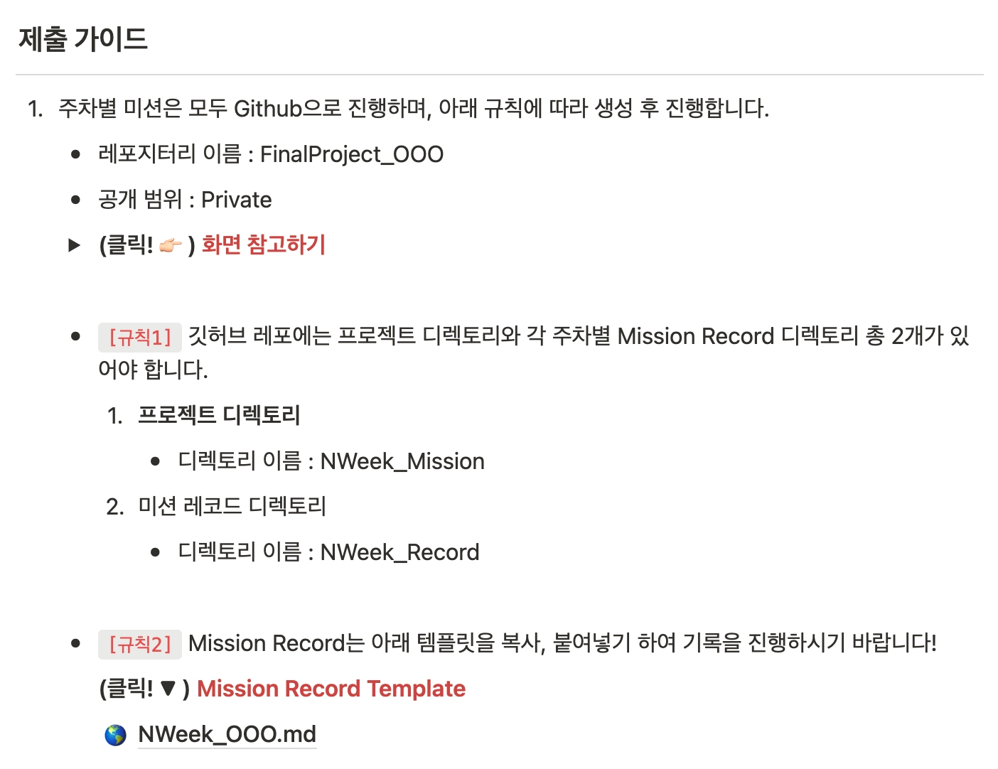 개인 리포지터리에 프로젝트 코드와 record를 작성하여 올린다.
