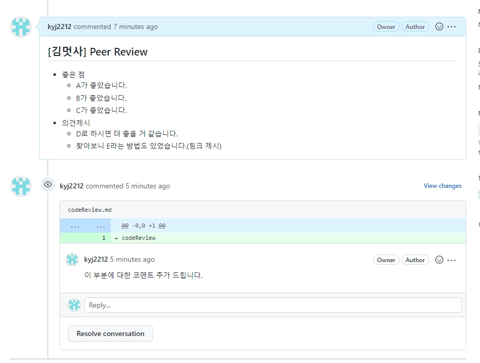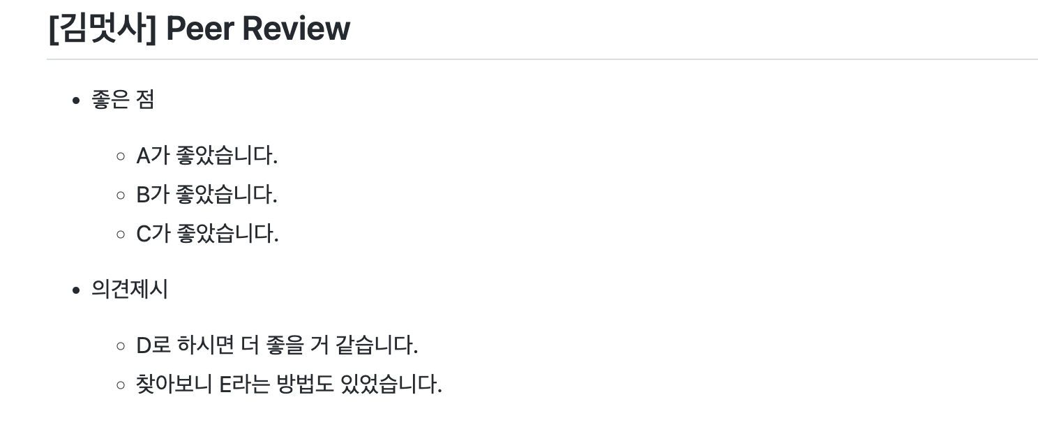 피어 리뷰 코멘트 템플릿