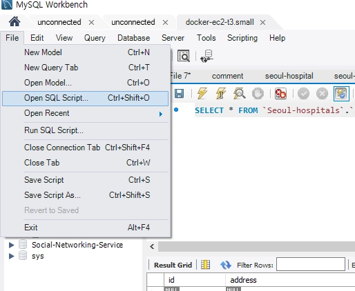 생성된 스크립트를 MySQL WorkBench에서 사용하기