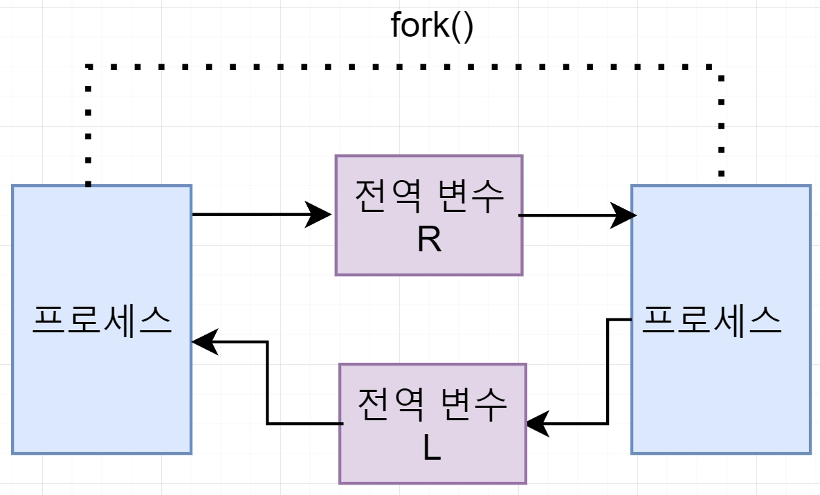 편지를 한통만 보관할 수 있는 우편함에 두 사람이 동시에 편지를 보내면, 편지 2통 중 하나는 우편함에 보관할 수 없다. 마찬가지로 전역 변수를 한개만 사용하여 데이터를 주고 받으려고 한다면 보내는 데이터나 받는 데이터 중 하나는 지워진다. 즉 전역변수가 1개면 한쪽 방향으로만 통신이 가능하며, 양방향 통신을 구현하려면 전역 변수 2개를 사용해야 한다
