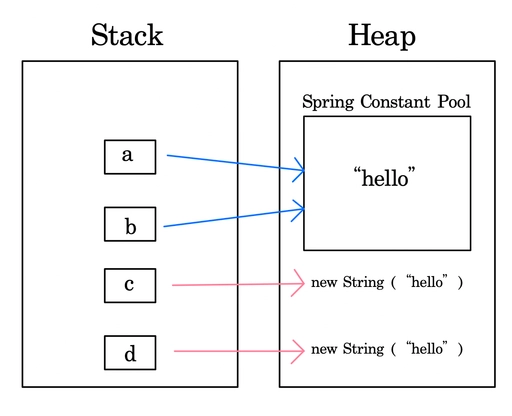 → String Constant Pool에 있는 경우 새로운 메모리에 할당하지 않고 재사용한다.