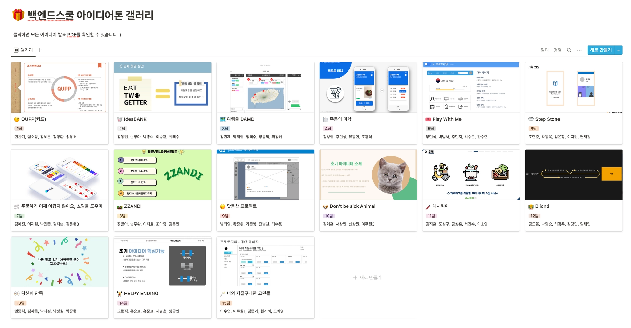 아이디어톤 갤러리 15개 작품