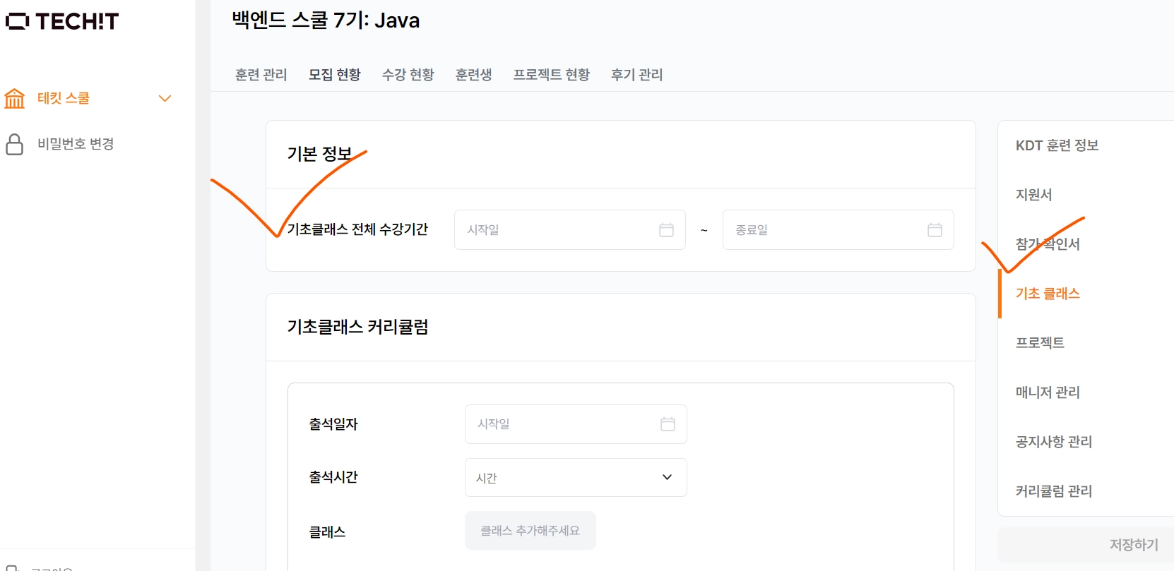 기초 클래스 전체 수강기간은 ‘훈련기간’과 똑같이 입력해야 함