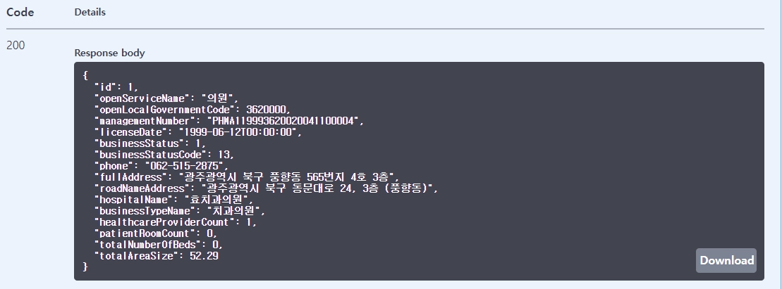 Hospital 데이터 출력 API