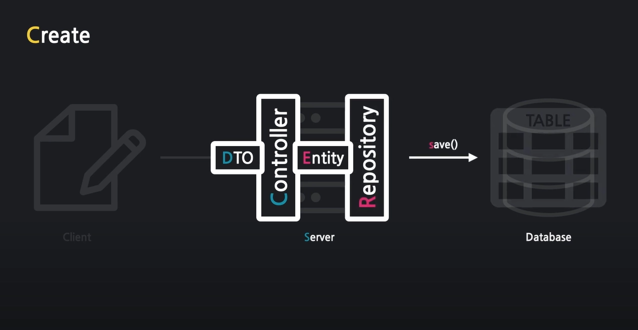 JPA에서는 Repository라고 부르며 인터페이스로 생성한다. 단순히 인터페이스를 생성 후 JpaRepository<Entity 클래스,PK타입>를 상속하면 기본적인 CRUD 메소드가 자동으로 생성된다.