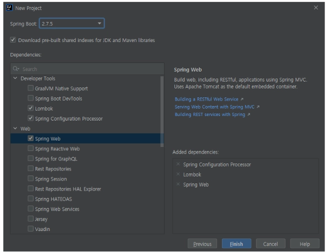 스프링 부트에서 spring-boot-starter-web 모듈을 사용하면 기본적으로 톰캣(WAS 중 하나)을 사용하는 스프링 MVC구조를 기반으로 동작합니다.