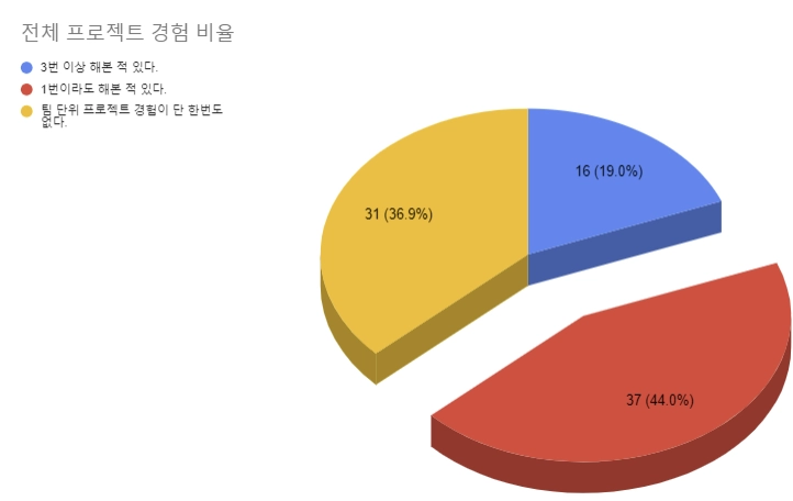 팀프로젝트 경험 없는 수강생 또한 31명 중 19명이 해당 부분에 속함