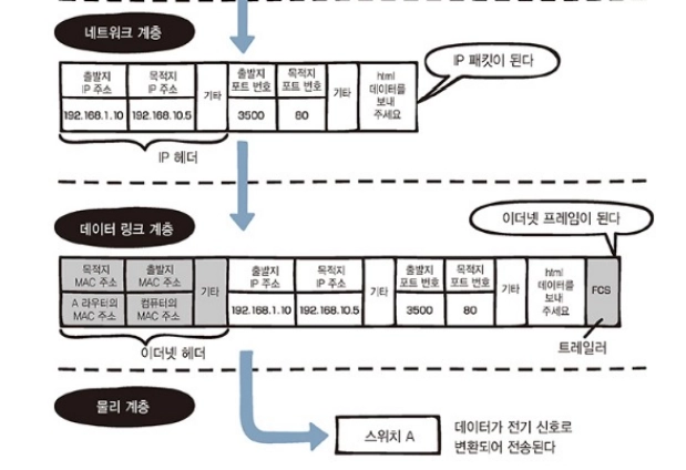 OSI 모델의 상위 응용 계층부터 하위 물리 계층까지에서 어떤 일이 일어나는지?