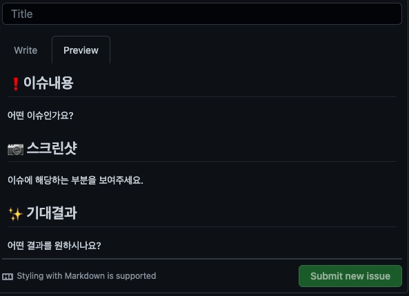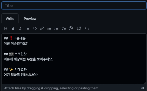 이슈에 대한 내용을 마크다운 방식으로 작성