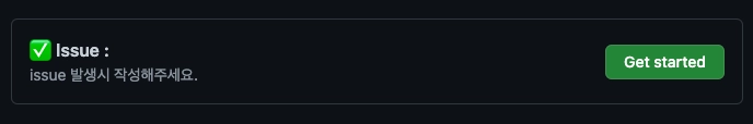 프로젝트 저장소에서 Issues 탭 들어가기 → New issue → 템플릿 확인 후 Get started 클릭!