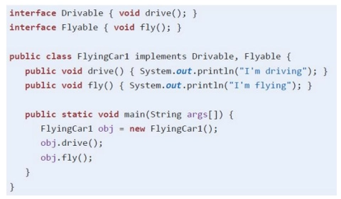 또 여러개의 인터페이스로 자바에서 불가능한 다중상속의 효과를 낼 수도 있다.