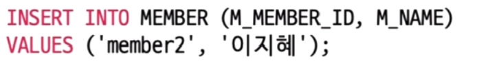 VALUES(칼럼1에 삽입하는 값, 칼럼 2에 삽입하는 값);