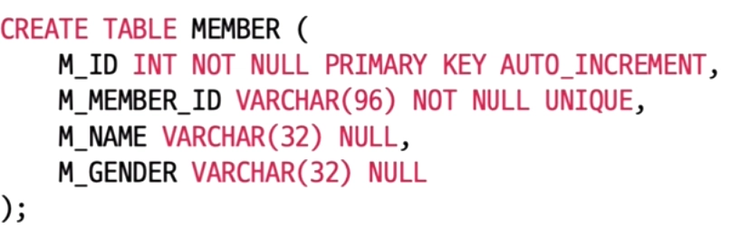 auto-increment가 되는 M_ID 를 제외하고, 값이 입력되지 않은 M_GENDER에는 NULL값이 저장된다.