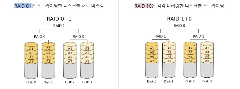 RAID 10 : RAID 1과 RAID 0을 결합